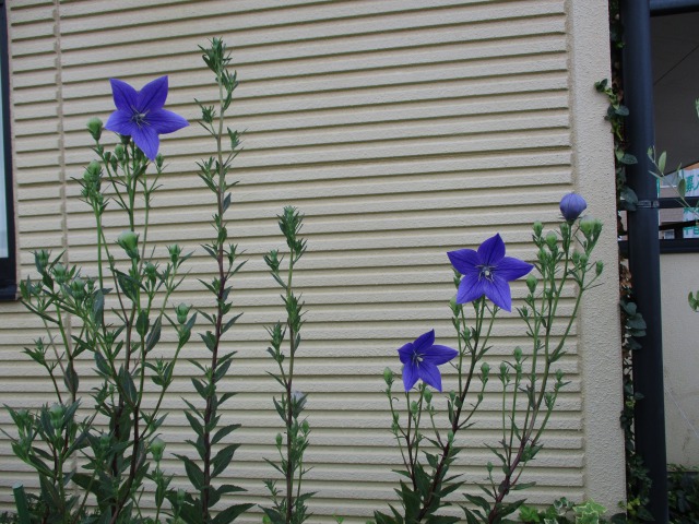 桔梗の花が、ポンッとはじけそうなつぼみから