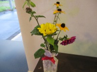 施設の花壇のヒマワリも、だんだん小さい花しか