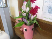 花瓶の金魚アレンジと、上司が持って来てくれた