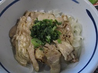 “豚肉の塩カルビ丼・高野豆腐の含め煮・味噌汁・フルーツ”