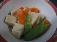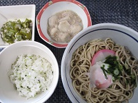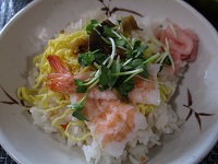 高野豆腐の含め煮とちらし寿司の彩りが美しく