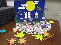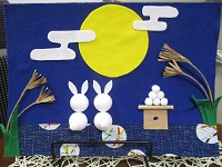 “お月見ボード”ご入居者様が持って記念撮影をしている姿が