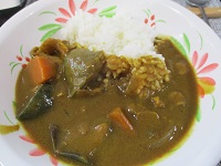 “夏野菜カレー・シーザーサラダ・福神漬・フルーチェ”で