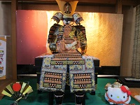 キティのぬいぐるみも兜をかぶっています(*^^)v