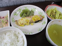 “鮭のコーンマヨ焼き・マカロニソテー・サラダ・