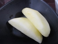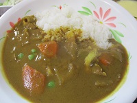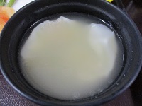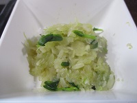 かき揚げうどん・山吹和え・おにぎり・フルーツ