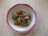 「煮物は味が染み込んでて鶏はふっくら根菜は柔らかくて、