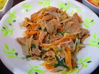 メイン料理の“牛ニラ炒め”の中のもやしが