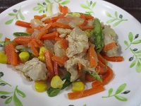 鶏肉料理は彩りもよく、
