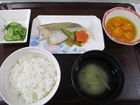 たらの酒蒸し・かぼちゃのそぼろ煮・きゅうりのみょうが和え