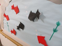 壁飾りを見た入居者様が「昔は池で金魚を飼ってた」