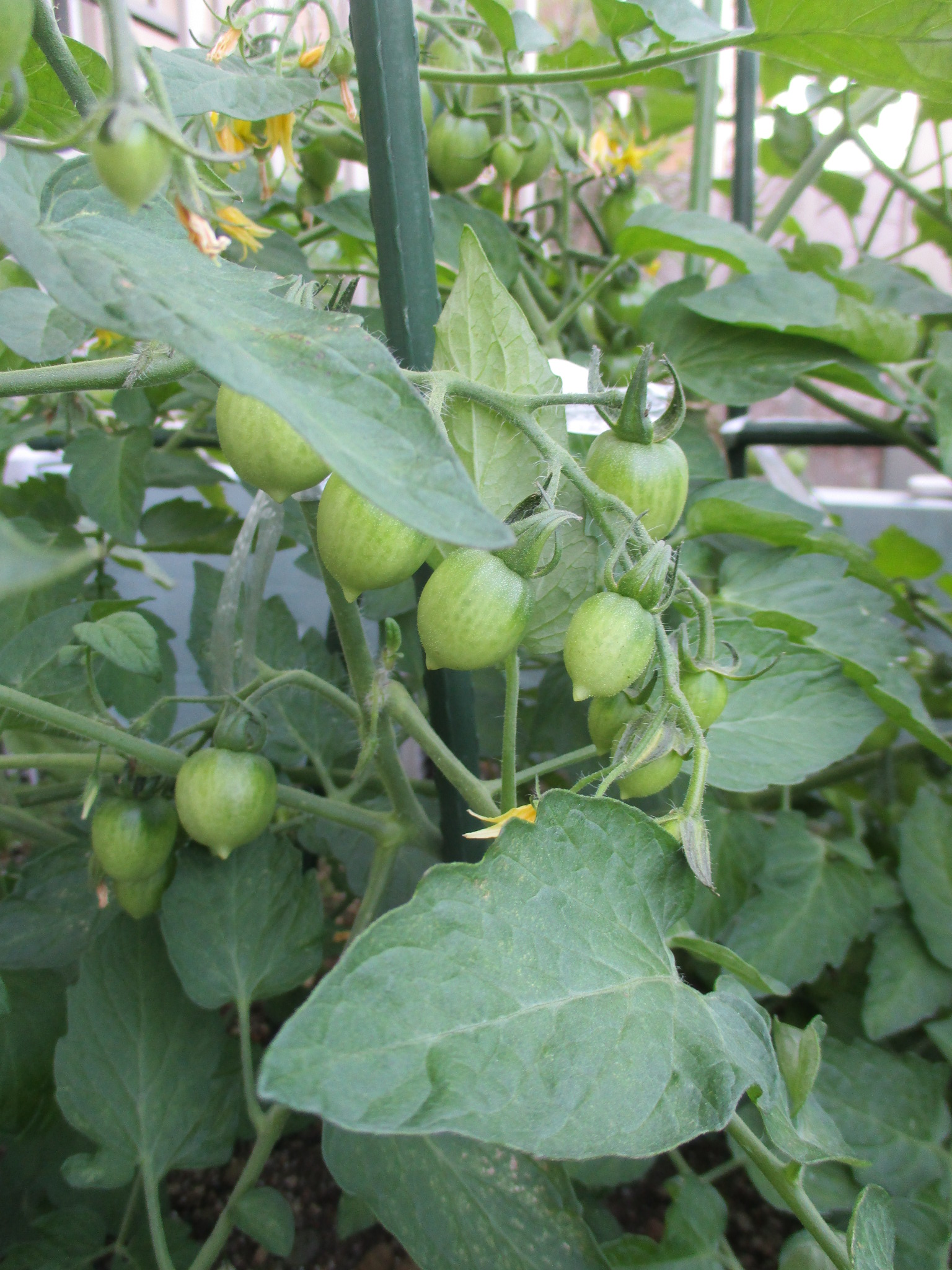 収穫はまだずっと先ですが、トマトは青い実がたくさん