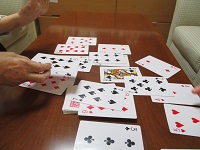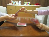 とあるフロアでトランプをされているご入居者が