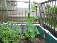 他に植えたなすもキュウリも茎がどんどん伸びて高さを増しています(^O^)