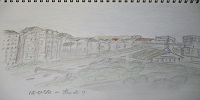 フロアにある飾りや窓から見える風景をスケッチされています。
