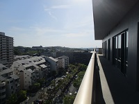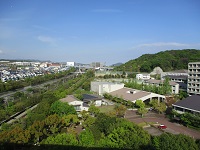 小高い丘の向こうに球場があります。試合のある日は花火があがり