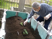 昨日6階バルコニーにて苗植えをしました野菜です。