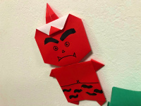 折り紙で作成した赤鬼・青鬼。