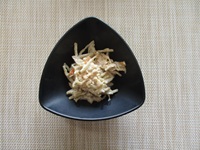 「ごぼうのシャキシャキした噛み応え抜群の食感、マヨネーズのコクのある旨味、