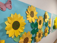 たくさんの折り鶴とお花で彩りも豊かに仕上がって