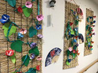 涼しげなすだれに手作りの朝顔が咲き誇りました(#^^#)