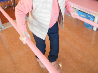 平行棒や歩行器を使用した歩行練習に力を入れております。