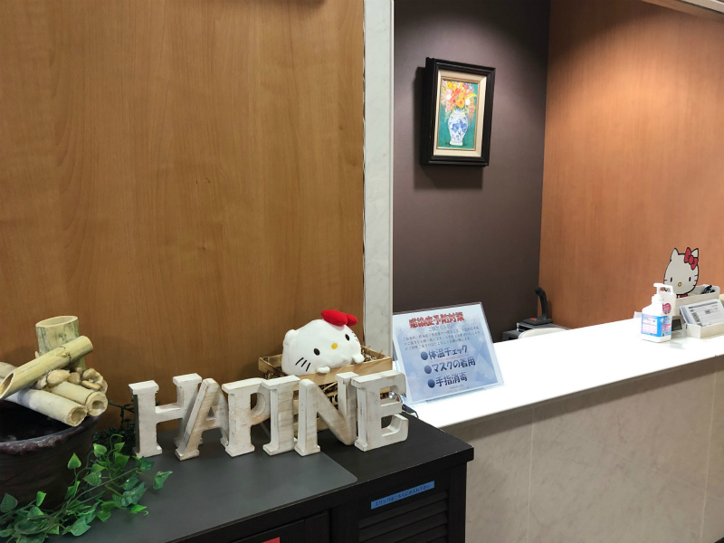 キティさんは少し控えめに受付横で見守っています。