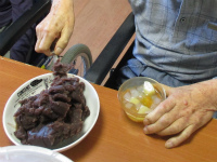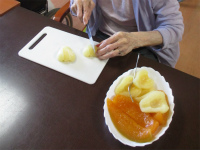 ご入居者には桃缶などを切り分けて頂きました。