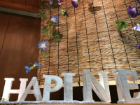 木製のアルファベットオブジェを使い、『HAPINE』を描き、