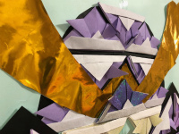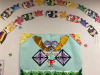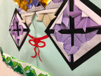 折り紙の『兜』を組み合わせて大きな兜を作成。