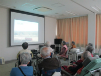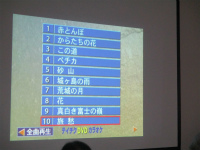 大画面に映し出される映像と歌詞を見ながら歌って頂きました。