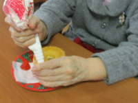 半分に切った苺の間に生クリームをご入居者で挟んで頂き、