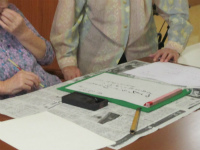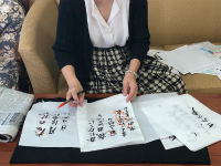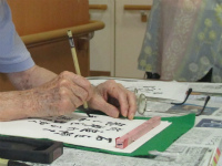 皆様真剣に書に向かい合い、先生の指導を受けておられます。