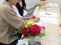 受付には、綺麗なバラ。参加者の方がご自宅で栽培されたものをお持ち下さいました。