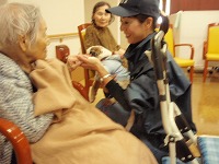 ご入居の皆様の膝の上に乗ったり、抱きかかえられており、皆さまとても優しい表情に