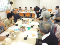 平成28年4月26日(火)13時~第9回たまり場カフェを開催しました。今回も大勢の方がお越しになり、ワイワイと楽しい時間を過ごしました。ボランティアさんもほぼ毎回出席してくださり、お茶やお菓子の準備など主体となって会を盛り上げてくださっています。そして、また、毎回恒例のクイズに皆さん奮闘。お孫さんにクイズを出したいと持ちかえられる方も。可愛いお孫さんも出席され、世代を超えて楽しいコミュニティーの場になっています。