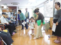 2歳のお孫ちゃんが、身振り手振りをしながら大勢の前でお歌を披露。あまりの可愛らしさに、ご入居者も満面の笑顔。腹話術の健ちゃんのおちゃめなお話に、会場から笑い声が。