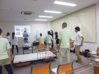 平成27年7月24日、本社研修として地域別研修教育訓練コースが開催されました。今回は、神戸3施設(学園・魚崎・魚崎弐番館)と広島の1施設合同の研修となり、グループとして職員同士の交流も図れました。午前は、㈱ケア・ビューティフルの山本陽子さんが「認知症ケア」をテーマに事例検討会を、午後は、同じグリーンライフグループのメディス足立の理学療法士、笠原聖吾さんが「介護技術向上研修」を担当。互いの施設でどのような工夫しているのか、技術の向上のためにはどうしたらいいのか等、ディスカッションや実技を通しながら多くのことを学んでいました。日々、自らのケアを見つめ直し、切磋琢磨していかなければならない介護のお仕事。一人でも多くのスタッフに学ぶ機会を設けられるようにしていければと思います。