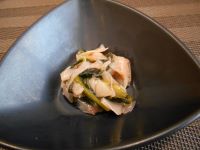 「ごはん」「あじの南蛮漬け」「長芋の白煮」「青梗菜のお浸し」「味噌汁」です