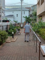 午前中から外に出てリハビリをされる方を