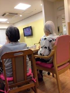 本日はおやつの後フロアーにてカラオケを鑑賞されていたので( *´艸`)