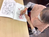 今日は絵がとてもお上手で、塗り絵がお好きな入居者様の真剣に