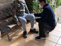 玄関先のベンチを使って立ち上がりの練習を行って頂きました。