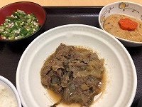 牛肉とナスなどの野菜を絡めて甘めに炒め、