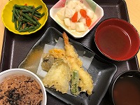 毎月1日の定番メニュー、お赤飯と天ぷらでした(#^.^#)
