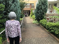 三密を避けるためにお一人ずつ玄関アプローチへ。