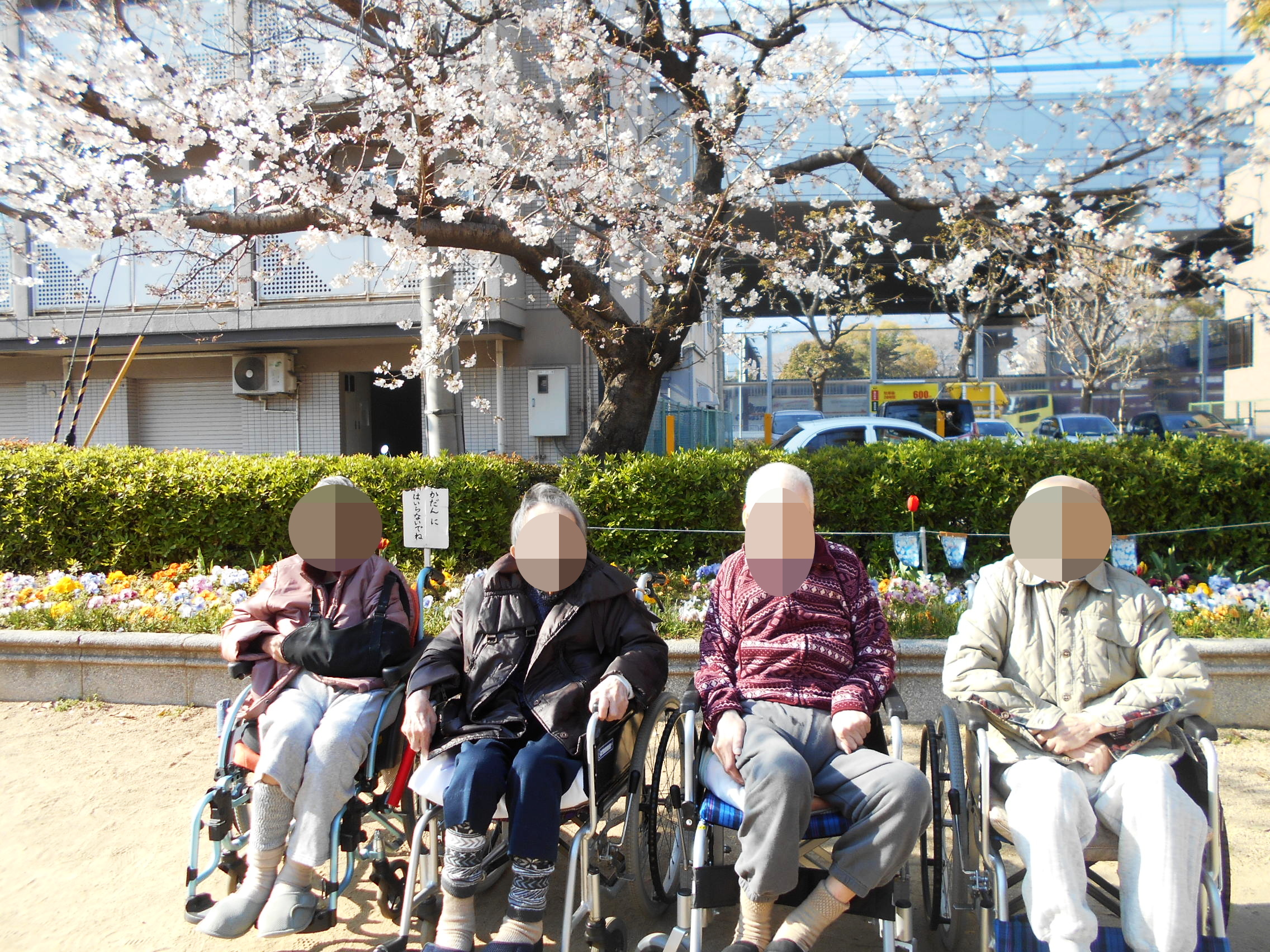 予定していたお花見の日が天候不良や気温低下で中止となり、4月第1週少人数ずつお花見を楽しんで頂きました。