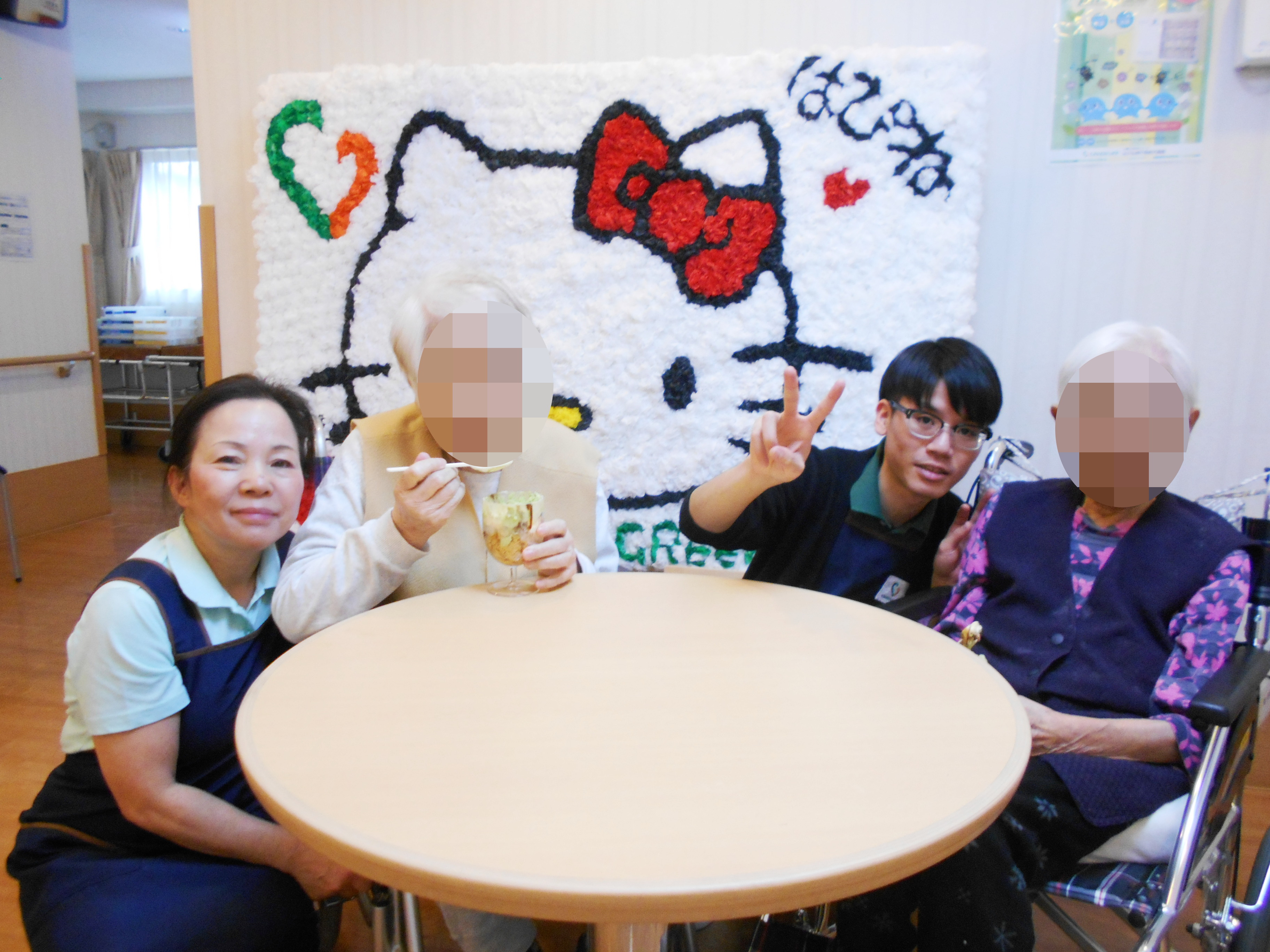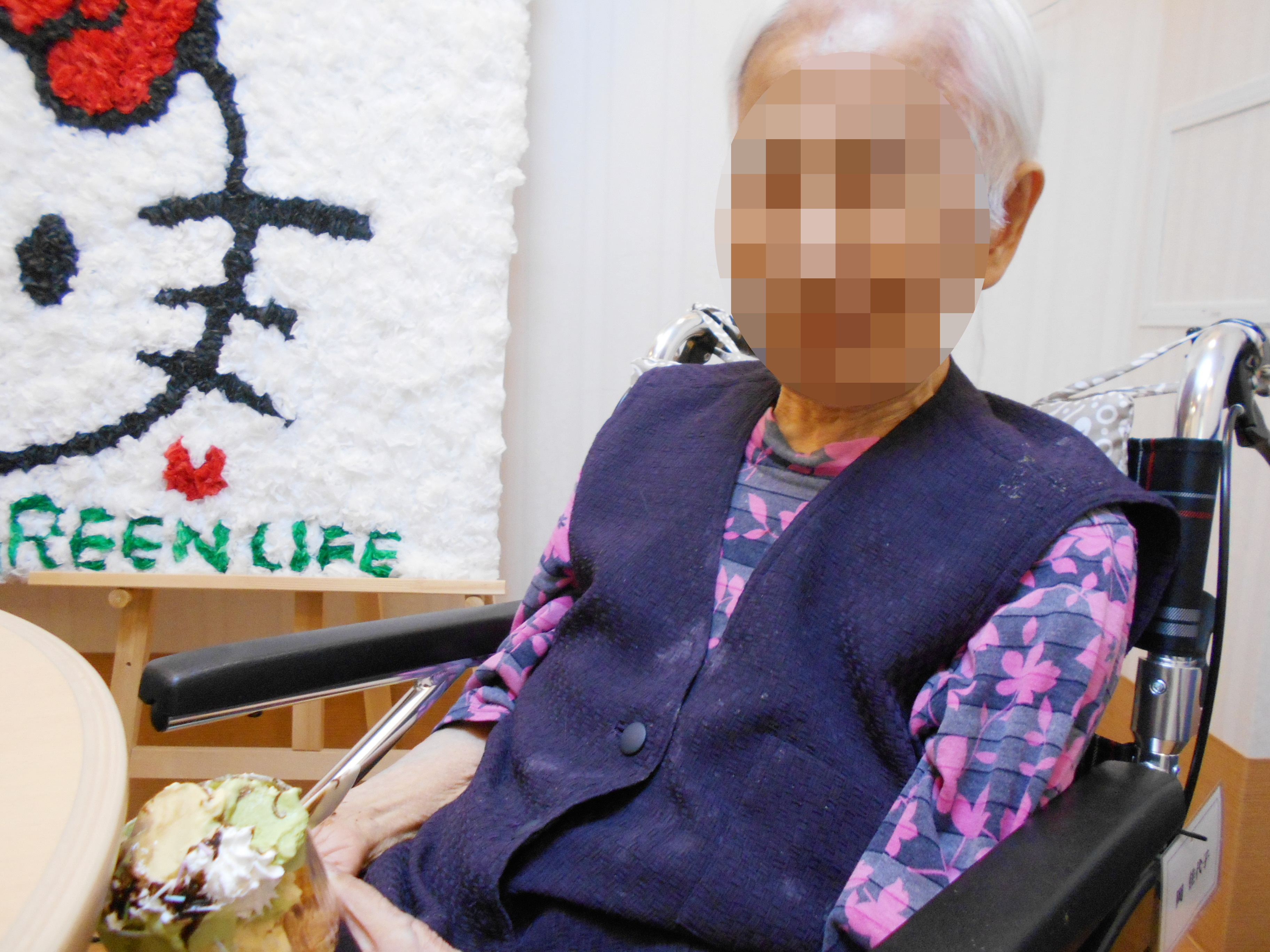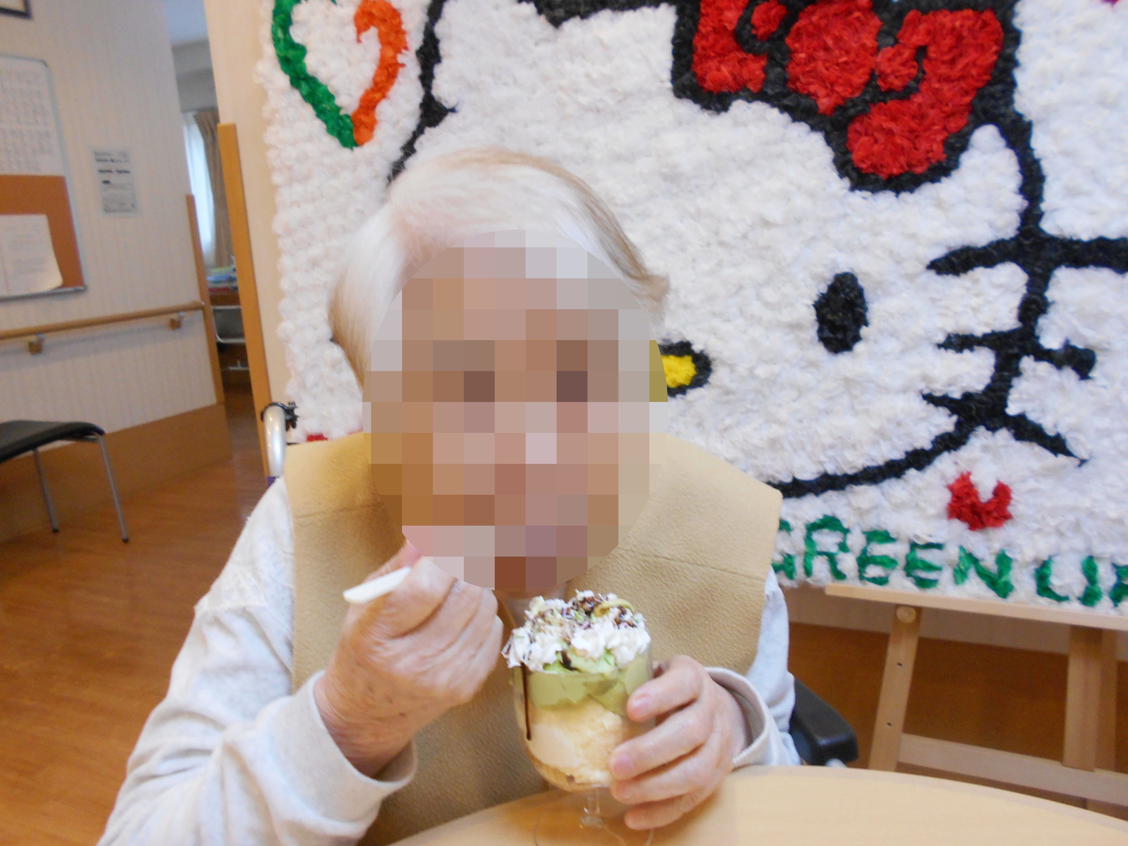今月のお誕生日は、O様・F様の2名。アイスクリームパフェを作って食べて頂きました。