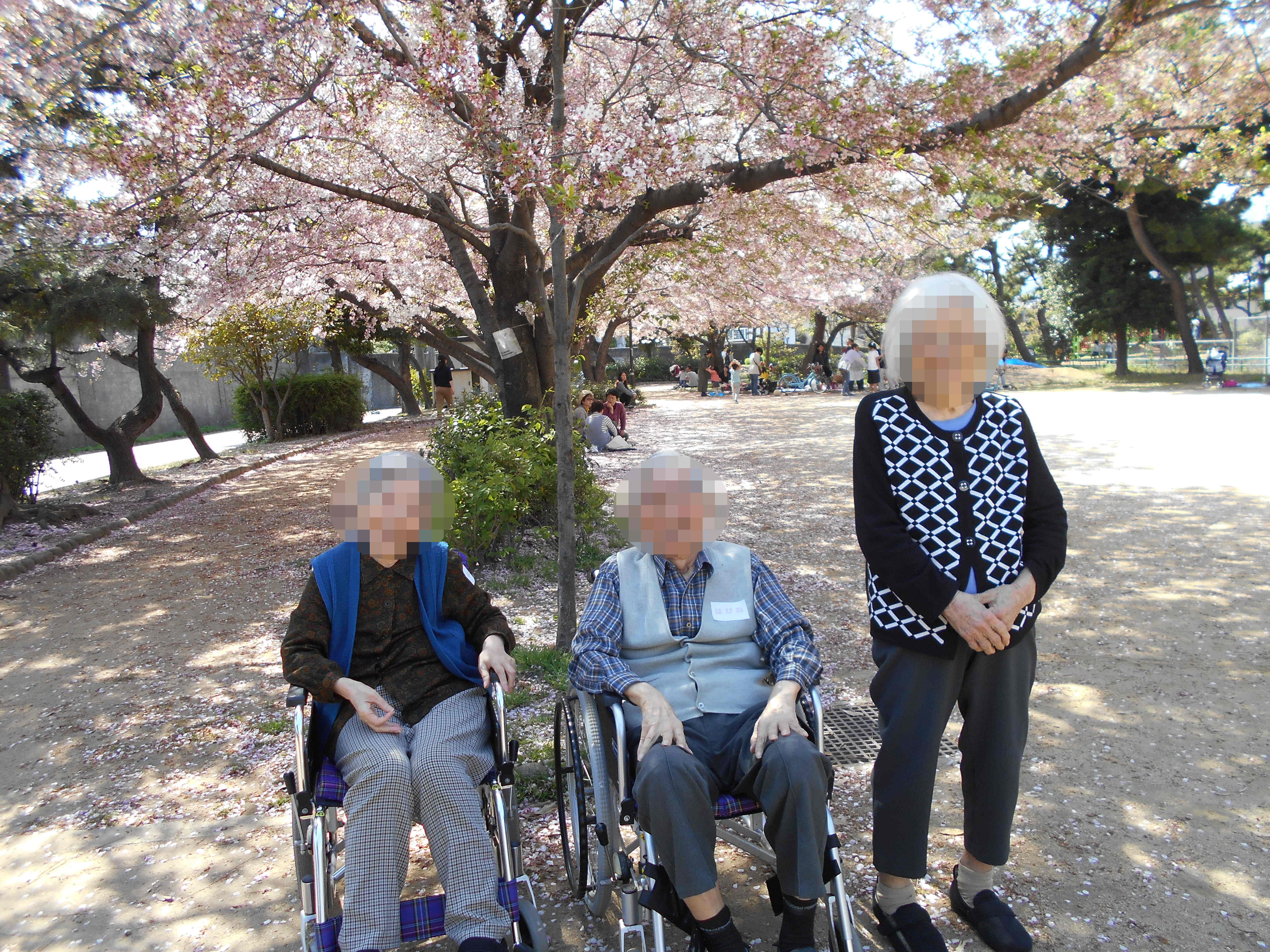 ご入居者様方もご参加され、可愛い動物たちをご覧になられたり、満開の桜の下で振る舞いのぜんざいに下鼓を打たれたりと、大変喜んで頂いたようで嬉しく思います。