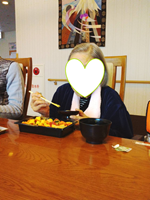 おやつは可愛らしい鬼のイラストが